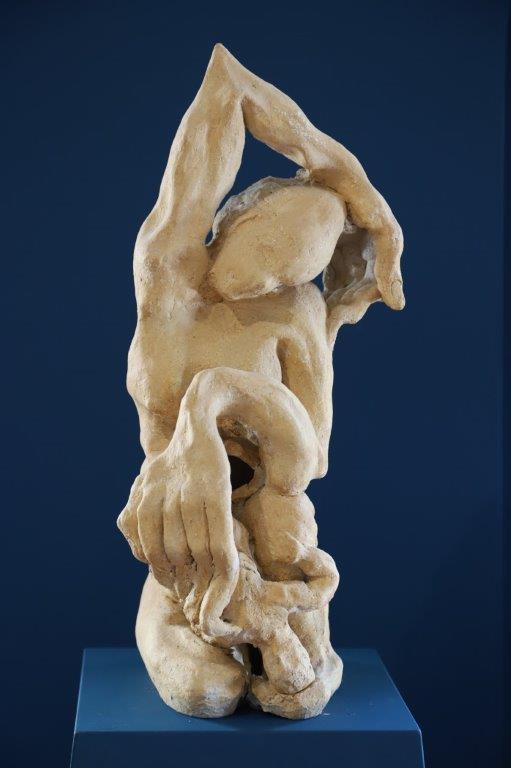 Costante nella ricerca di Benito Cavalieri è l’interesse per la rappresentazione della figura umana; persistente il tema della maternità che ha radici profonde nel suo vissuto, perde la madre poco dopo averlo dato alla luce. L’opera pittorica e scultorea diventa campo di battaglia della propria esistenza: le forme, le curve, le linee si accumulano, fino a formare agglomerati di carne viva, grida di dolore, narrazione di inquietudini che prendono forma dalla materia, varia, che la sua sconfinata immaginazione riesce a plasmare.