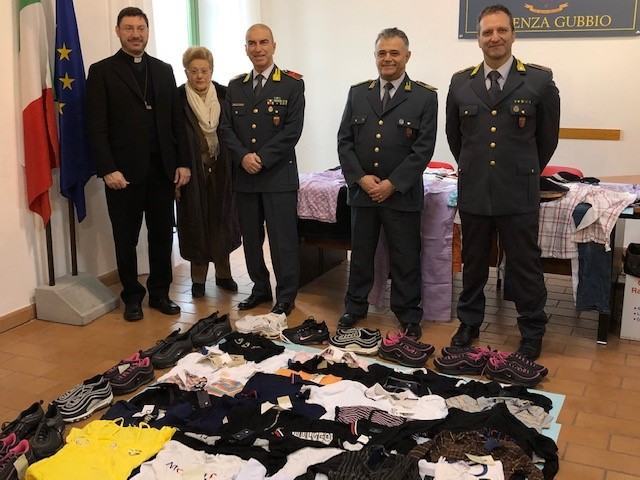 Il Comando Provinciale di Perugia ha donato alla Caritas numerosi capi di abbigliamento, sequestrati dalla Tenenza di Gubbio presso fiere e mercati settimanali nell’ambito della lotta alla contraffazione e alla tutela dei marchi.