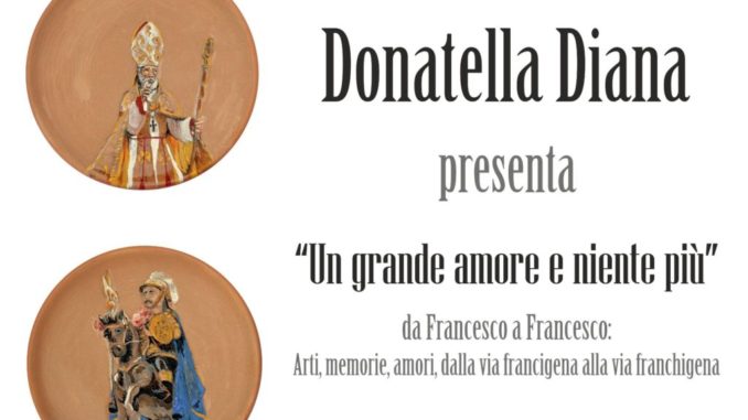 “Mercoledì 1° giugno, alle ore 18,30, inaugura a Gubbio, presso la Galleria della Porta – in corso Garibaldi, 33 – una mostra d’arte singolare. Espone le sue creazioni, per la prima volta, Donatella Diana, “ragazza del ’63”, figlia d’arte, romana, ma col cuore “residente a Gubbio” dove, grazie all’amore dei nonni materni per la città, è cresciuta sin dalla più tenera età. E’, quello “della Dona”, un percorso a ritroso, nelle radici del cuore: la chiamavano S. Francesco da bambina, perché ammansiva anche il più pericoloso dei cani con cui veniva a contatto; e per lei quel nome fu un vero richiamo, quasi una profezia, visto che negli ultimi 15 anni ha accompagnato, con amore e dedizione, come amica del cuore, i passi del maestro Franco (“Francesco”!) Califano del quale, dalla scomparsa, cura anche la “casa-museo” che il Comune di Ardea, dov’egli riposa, gli ha dedicato.