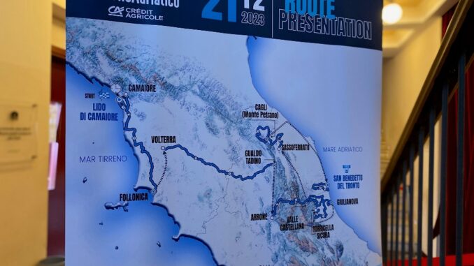 Gualdo Tadino sempre più nella storia del ciclismo internazionale con l’arrivo il prossimo 6 marzo della 3° Tappa Volterra-Gualdo Tadino valevole per la 59° edizione della Tirreno-Adriatico. Il bellissimo regalo di Natale pervenuto al Sindaco, Massimiliano Presciutti è stato ufficializzato giovedì 21 dicembre a San Benedetto del Tronto, presso il teatro Concordia, dove è avvenuta la presentazione nazionale della 59esima edizione della Corsa dei Due Mari.