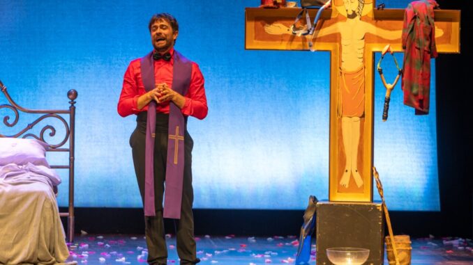 Sequestra così per un’ora il mezzo il pubblico e lo pone al centro di un esperimento unico e irresistibile, avventurandosi tra vizi, ragioni e sentimenti della fauna umana, oscillando come un esilarante pendolo tra gli estremi del sesso e della Fede, in metamorfosi continua tra i suoi personaggi, il morigerato Don Mauro schiavo di un catechismo improbabile, e l’illuminato Rashid, pizzettaio musulmano modernista.