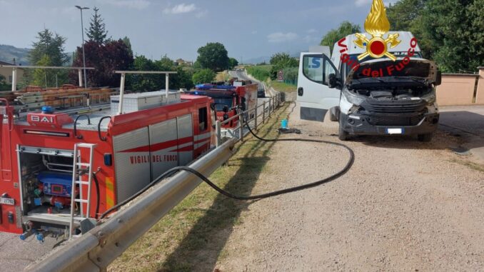 Nel tardo pomeriggio di oggi, i Vigili del Fuoco di Gaifana sono intervenuti prontamente per spegnere un incendio divampato all’interno di un furgone corriere sulla SS3 Flaminia, poco distante dal centro abitato di Nocera Umbra.