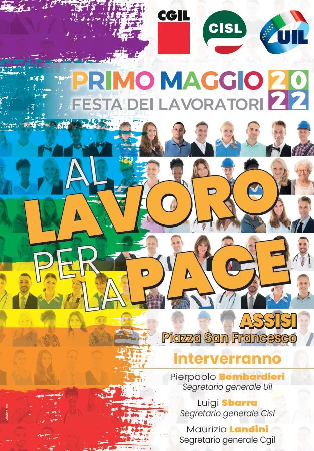 1 Maggio festa dei lavoratori. Dopo due anni di pandemia tornano in presenza le iniziative che celebreranno questa importante giornata, che domenica prossima avrà un calendario più ricco. Duplice, infatti, è l’appuntamento nel nostro territorio. Si inizia la mattina di domenica 1 maggio alle ore 10 ad Assisi in piazza San Francesco con la manifestazione nazionale di Cgil, Cisl e Uil “Al lavoro per la Pace”, che vedrà gli interventi di Pierpaolo Bombardieri, Segretario generale Uil, di Luigi Sbarra, Segretario Generale Cisl, di Maurizio Landini, Segretario generale Cgil e che porrà al centro del discorso i temi della pace, del lavoro e della crescita del Paese.