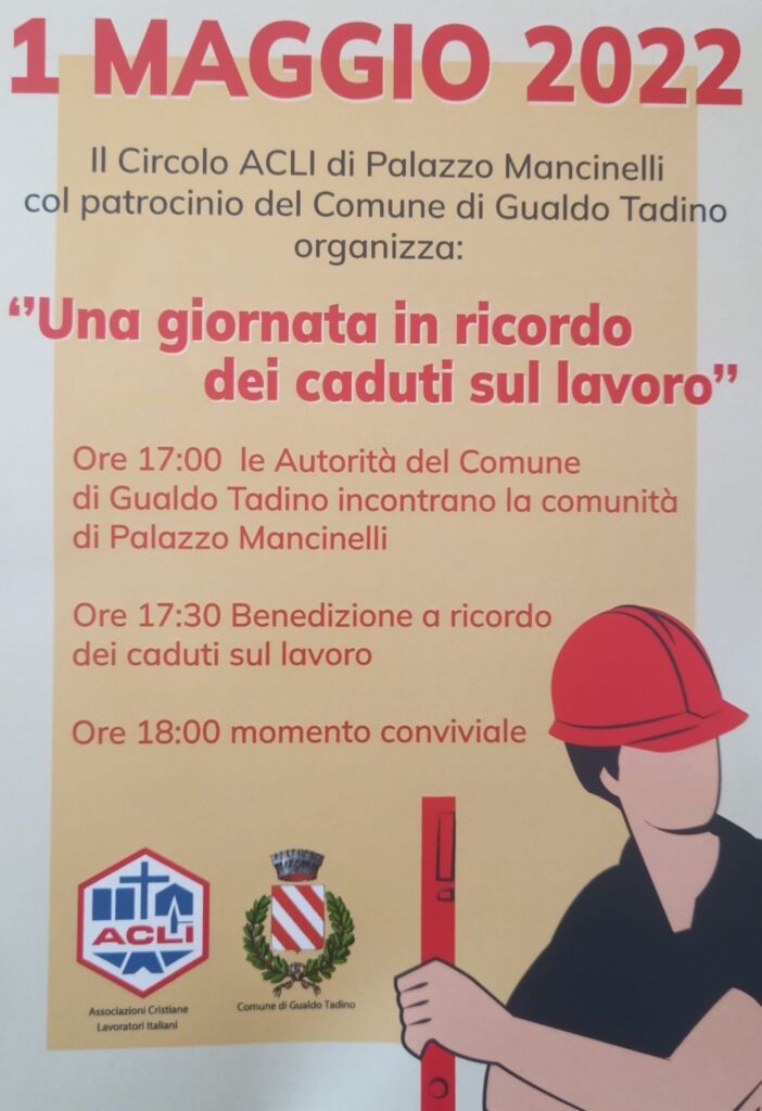 L’evento promosso dal Circolo ACLI di Palazzo Mancinelli con il patrocinio del Comune di Gualdo Tadino porrà al centro il tema degli infortuni sul lavoro e alle ore 17.30 vedrà una benedizione a ricordo di tutti i caduti sul lavoro. Si invitano tutti i cittadini e le associazioni a partecipare ai due appuntamenti sopra citati. “In occasione del 1 maggio – ha sottolineato il Sindaco Presciutti – quest’anno il mondo del lavoro si mobilita con un duplice appuntamento, il primo di livello nazionale si svolgerà la mattina ad Assisi e vedrà la presenza delle associazioni sindacali che faranno un focus su pace, lavoro e sviluppo del paese, mentre nel pomeriggio in collaborazione con l’Acli a Palazzo Mancinelli si terrà un’iniziativa che porrà al centro del discorso la sicurezza sul lavoro ricordando i morti caduti durante l’attività lavorativa. Trattandosi di iniziative di grande significato e valore invito tutti quanti a partecipare”.