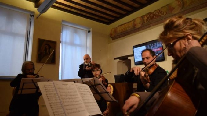 Luca Venturi e Cecilia Rossi al violino, Luca Ranieri alla viola e M. Cecilia Berioli al violoncello hanno eseguito con professionalità, trasmettendo emozione al pubblico presente, un programma che ha offerto, ad un secolo di lontananza, un ascolto di brani musicali (Pause del silenzio (1917), Dammi Pace, o mio pensiero (1917), Intermezzo da “Cavalleria Rusticana”, Impressioni di guerra (1917) e Pagine di Guerra (1915)) e di pagine di diario (tutte le letture tratte da “Nell’altro campo, Diario di Prigionia” di Mario Squartini, musicista e soldato perugino) in grado di raccontare in presa diretta stati d’animo e vicende legate al conflitto. Un momento molto commovente che ha portato ad un lungo applauso finale.