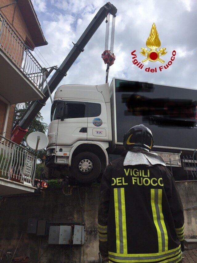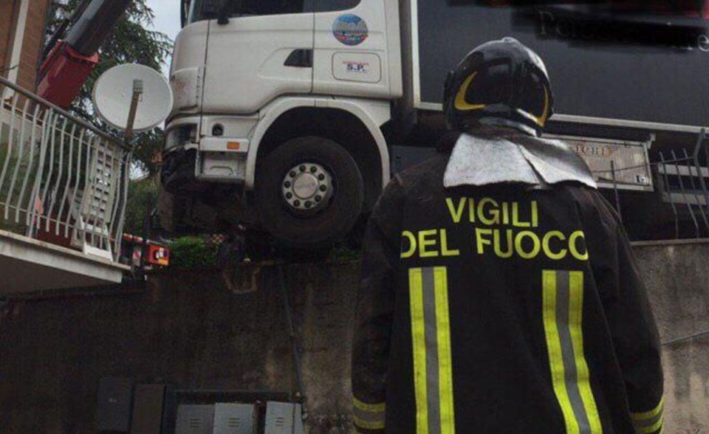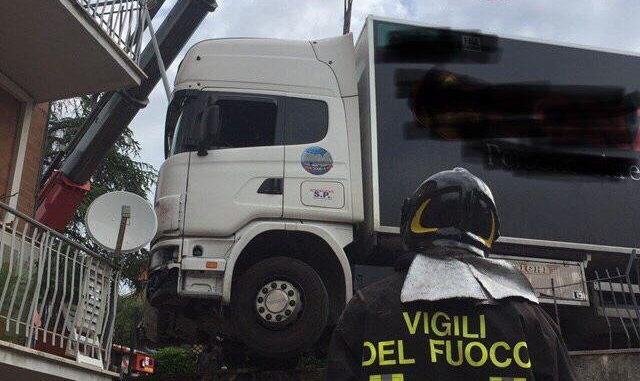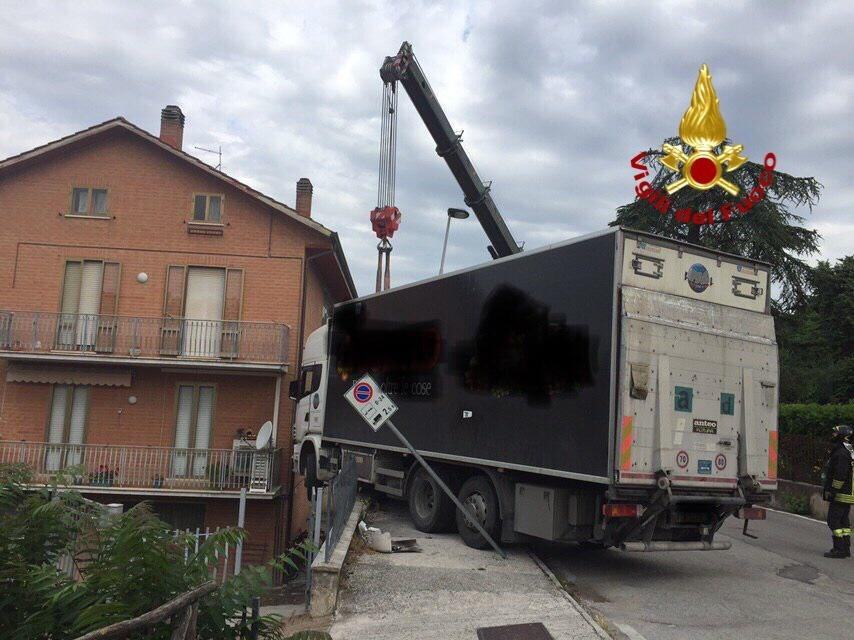 Un camion ha travolto una colonnina di un contatore del gas a Gubbio. Il mezzo pesante, nell’incidente, è finito ad un passo da una abitazione. Ha travolto prima un segnale e poi la colonnina del contatore del gas, ha sfondato la balaustra metallica e si è fermato sospeso nel vuoto con la ruota anteriore.