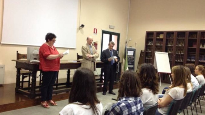 Hanno partecipato le classi III A e III B del II.° Circolo ‘A. Moro’ con l’insegnante Simonetta Gavirati; le classi 3^ I, 2^O, 3^ L della “Mastro Giorgio – O. Nelli” con le insegnanti Antonella Bartocci, Orietta Carletti, Giovanna Ghigi e gli studenti della classe II B del Polo Liceale “G. Mazzatinti” con l’insegnante Elena Donnini. Tutti gli studenti hanno ricevuto la pubblicazione realizzata a cura del Comune e l’encomio di sindaco e assessore.