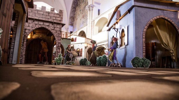 Questi doneranno, a chi ne farà richiesta, una riproduzione in scala ridotta (1:35) della Natività ambientata in un villaggio medievale dell’Appennino umbro, interamente di cartone come l’originale, disegnato dal maestro Severino Baraldi, che sta riscuotendo un enorme successo. Sono oltre settemila, infatti, i visitatori che si sono recati a Gualdo Tadino per ammirare quest’opera, unica nel suo genere.