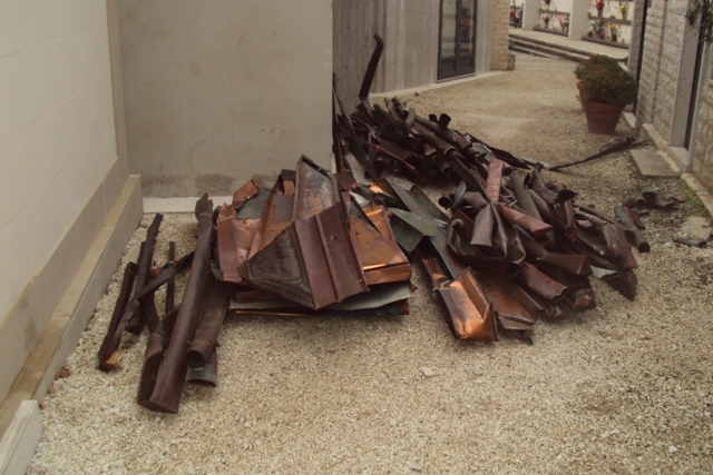 Attirati da questa insolita circostanza, con circospezione si avvicinavano all’ingresso del cimitero e chiamavano rinforzi per intervenire in caso di flagranza di reato. Subito in aiuto giungevano i Carabinieri di Scheggia con i quali sorprendevano alcuni individui intenti a caricare grondaie e discendenti in rame su di un autocarro.