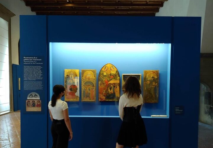 Fulcro dell’esposizione è la ricostruzione integrale a Palazzo Ducale di un grande pentittico francescano ricomposto per la prima volta nel suo aspetto originario. L’opera fu, infatti, smembrata ed oggi è conservata in cinque sedi diverse tra Italia, Francia e Stati Uniti. La mostra resterà visitabile fino al 9 gennaio 2022.