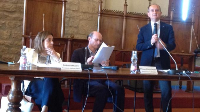 Gubbio, come capofila del progetto dei 10 Comuni dell’area interna ‘Nord – Est Umbria’, svolge un ruolo cruciale di traino e di sensibilizzazione sulle problematiche aperte. Dal lavoro comune nascono le risposte e le soluzioni ». Smacchi ha poi presentato i consiglieri regionali presenti: Maria Grazia Carbonari vice presidente di Commissione, Carla Casciari, Claudio Ricci, Andrea Liberati, Marco Vinicio Guasticchi, Raffaele Nevi, alcuni dei quali sono anche intervenuti. Nel prendere la parola e nel ringraziare tutti gli intervenuti, in primi la presidente Marini e il consigliere regionale Smacchi, il sindaco Stirati ha ricordato come l’amministrazione di Gubbio ha, sin all’inizio del mandato, costruito un sistema di relazioni che avesse la forza, nel dibattito regionale, di aprire la strada al superamento di ritardi accumulati nel tempo, su fari fronti.