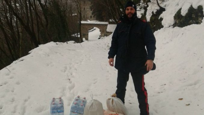 Carabinieri Scheggia portano generi alimentari ai monaci dell’Eremo di San Girolamo, bloccati dalla neve SCHEGGIA – Non è la prima volta che i carabinieri di Scheggia corrono in loro aiuto. Nei giorni scorsi, a causa delle abbondanti precipitazioni nevose, i monaci dell’Eremo di San Girolamo erano rimasti isolati ed irragiungibili. L’eremo, ubicato nel Monte Cucco, ospita due confratelli della congregazione degli “eremiti di Montecorona” i quali vistisi nei guai hanno chiesto aiuto ai carabinieri di Scheggia. “Abbiamo terminato le scorte di cibo hanno detto, non riusciamo ad uscire”. Il comandante della stazione assieme ad uno dei suoi militari ha quindi deciso di andare a soccorrerli.