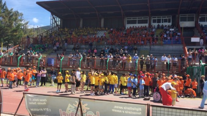 GUALDO TADINO – Una bellissima giornata di sport, festa e allegria è quella che si è svolta nella mattinata di venerdì 8 giugno presso lo stadio Comunale di Gualdo Tadino in occasione dei “Giochi della Gioventù 2017”. Tantissimi studenti di tutte le scuole elementari di Gualdo Tadino si sono sfidati sul prato verde e sulla pista d’atletica del “Luzi”, attraverso sfide entusiasmanti ed avvincenti. Essi si sono cimentati in varie specialità: dal percorso misto, all’atletica (lancio del vortex, corsa 50 m e staffetta) al calcio.