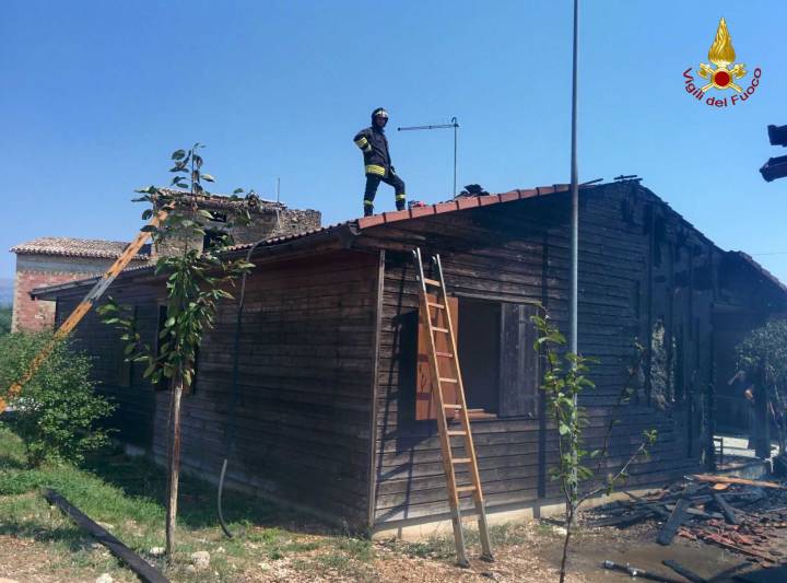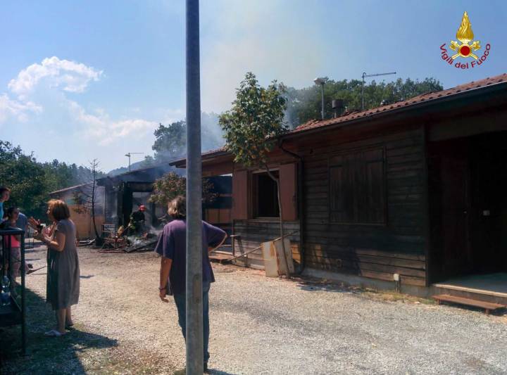 I Vigili del Fuoco sono intervenuti, dalle ore 12.30 del 13 agosto a Pertona di Perugia località nei pressi di Nocera Umbra per un incendio che ha coinvolto alcune case in legno ed in particolare all’arrivo dei pompieri due strutture erano già interessate dalle fiamme ed una terza era fortemente minacciata.