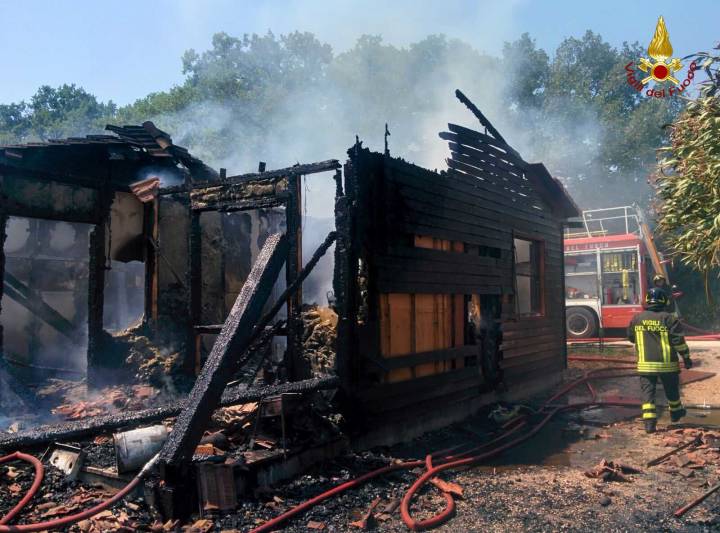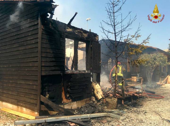 In definitiva è stato poi necessario affrontare anche ben tre bombole di gas (GPL) presenti nei suddetti fabbricati in legno. Le operazioni di spegnimento e di messa in sicurezza si sono concluse dopo circa 5 ore di lavoro.