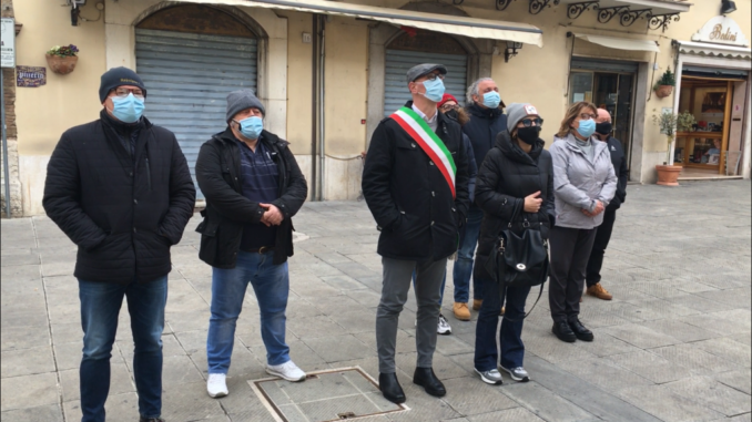 Alle ore 11 il sindaco Massimiliano Presciutti, l’intera Giunta Comunale, il Segretario Comunale Augusto Pantaleoni ed il Presidente del Consiglio Comunale Gloria Sabbatini, sono scesi in Piazza Martiri per osservare un minuto di silenzio, in concomitanza dell’arrivo del presidente del Consiglio dei ministri, Mario Draghi, a Bergamo, al cospetto della bandiera italiana a mezz’asta in una delle città più colpite dalla pandemia.