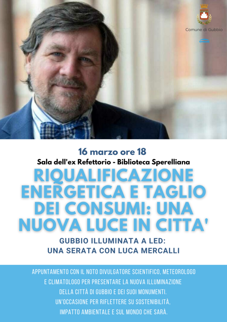 Luca Mercalli a Gubbio per presentare la nuova illuminazione a led